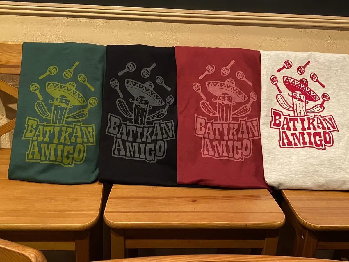 BATIKAN AMIGO Tシャツ ビンテージバージョンが登場!定番の黒、人気のオリーブグリーン、新色のオシャレなワインレッド、カワイイグレーの4色。